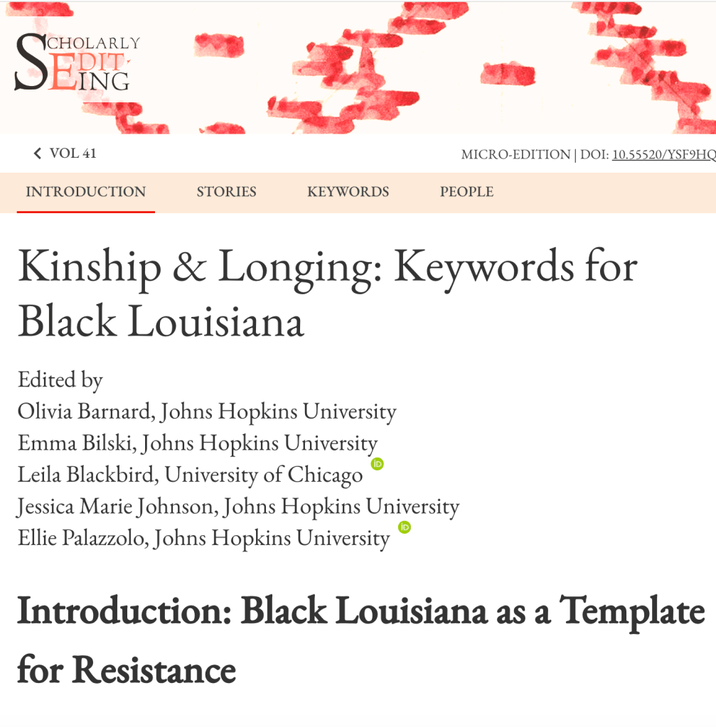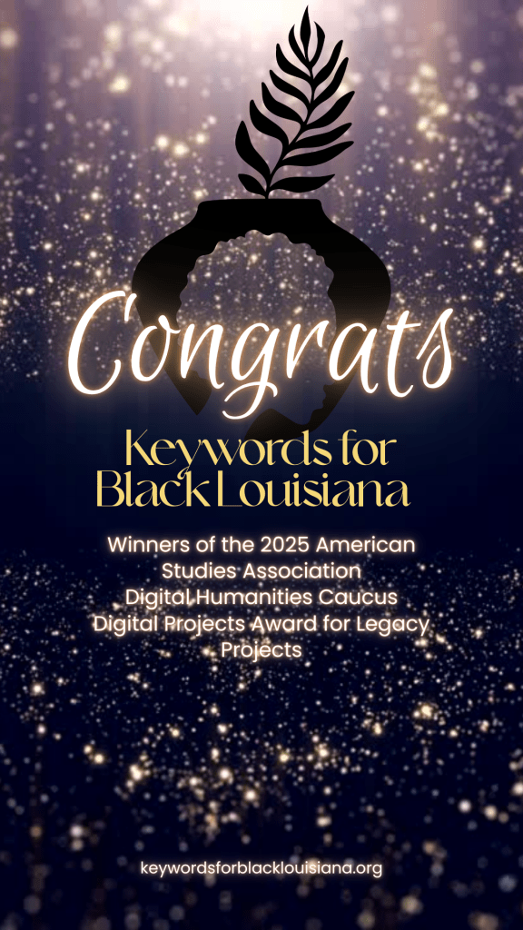 Keywords for Black Louisiana: 2025 Winner of the Digital Projects Legacy Award from Digital Humanities Caucus of the American Studies Association. Read the congratulations post here.